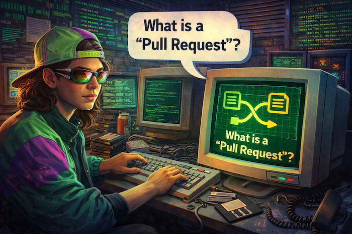Section titled: A little context: how code gets storedBefore a pull request makes sense, you need to know a tiny bit about how developers store their code.